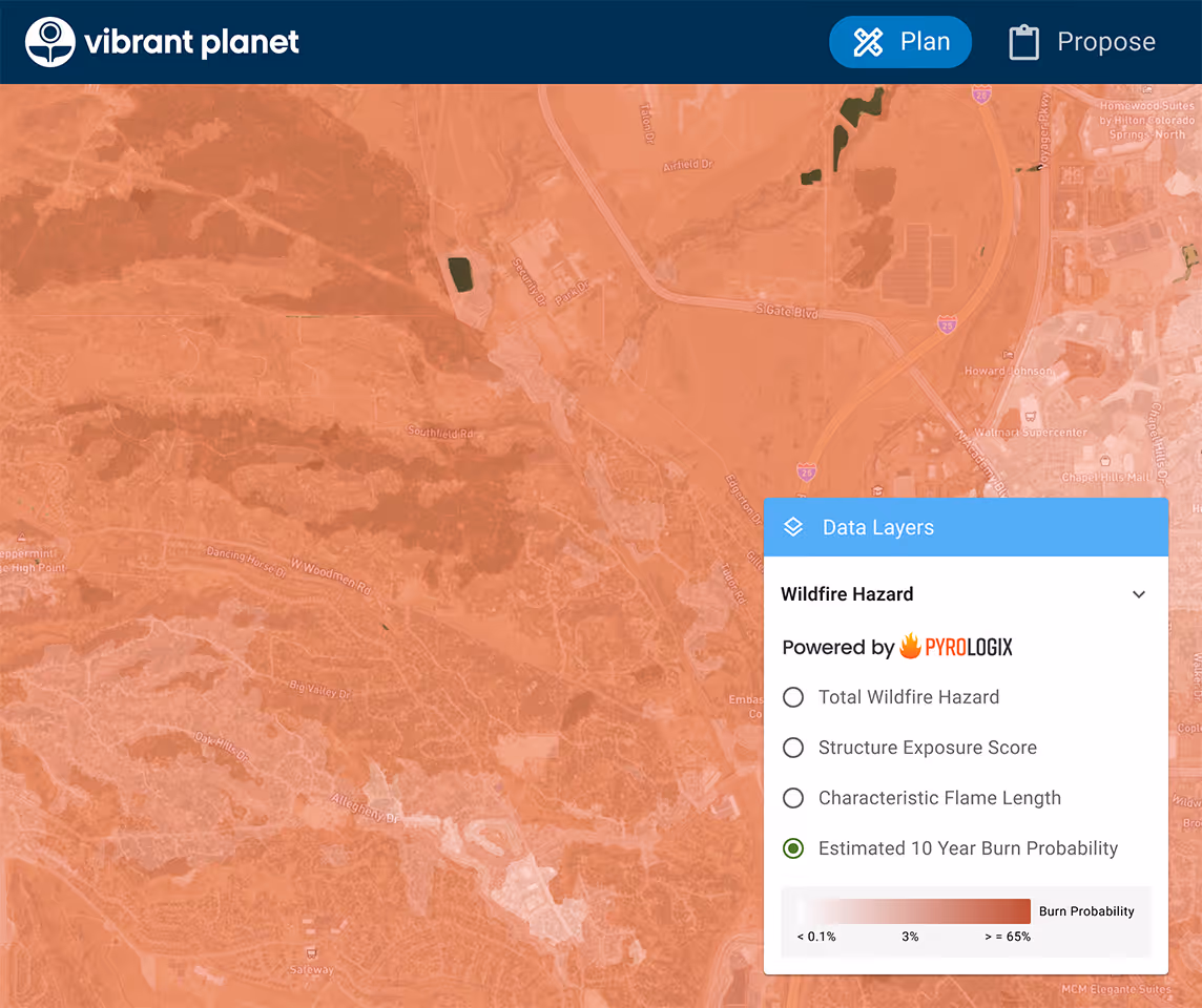 Get a full spectrum view of risk, from potential ignition sites to fire pathways to individual structures – all embedded in Vibrant Planet’s decision support apps and available to buy as a data service.